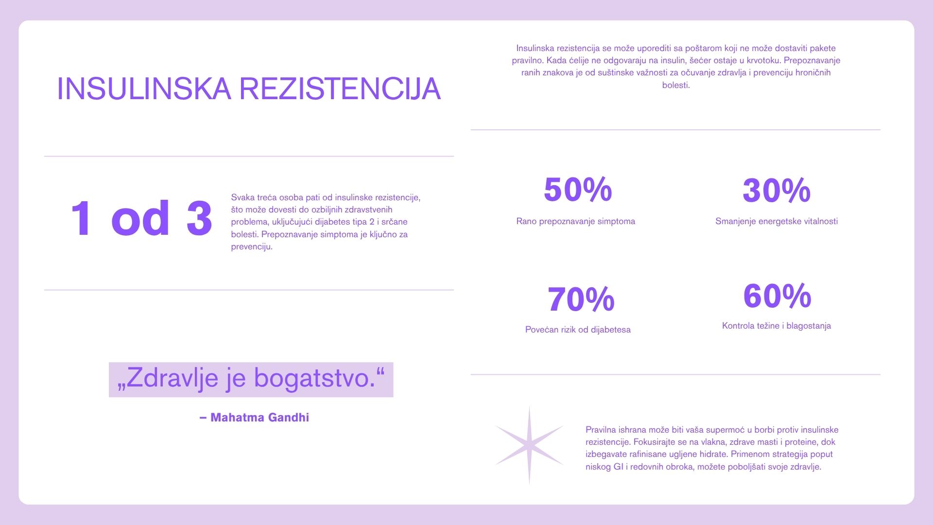 Zamisli da imaš tajnu moć koja ti omogućava da sprečiš mnoge zdravstvene probleme i osećaš se fantastično! Upravo to ti nudi prepoznavanje i rešavanje insulinske rezistencije! Ne samo da ćeš izbeći dijabetes tipa 2, već ćeš smanjiti rizik od raznih hroničnih bolesti. Možeš povratiti svoju energiju, kontrolisati težinu i poboljšati svoje opšte blagostanje za čak 70-80% samo promenom navika! Zvuči kao magija? Ne, to je samo tvoje telo kada mu daš ono što mu treba!