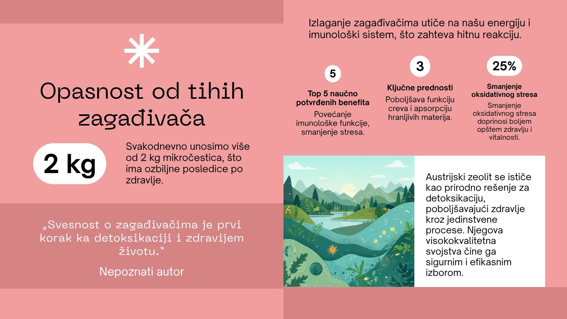 Postoji mnogo metoda detoksikacije, ali samo jedna nudi rešenje koje je istovremeno prirodno, potentno i nežno prema organizmu. Predstavljamo vam austrijski zeolit, čisti mineral vulkanskog porekla koji postavlja nove standarde u čišćenju organizma.